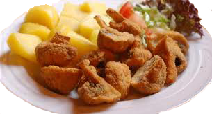 Smažené žampióny, brambor, tatarka (1, 3, 7, )
